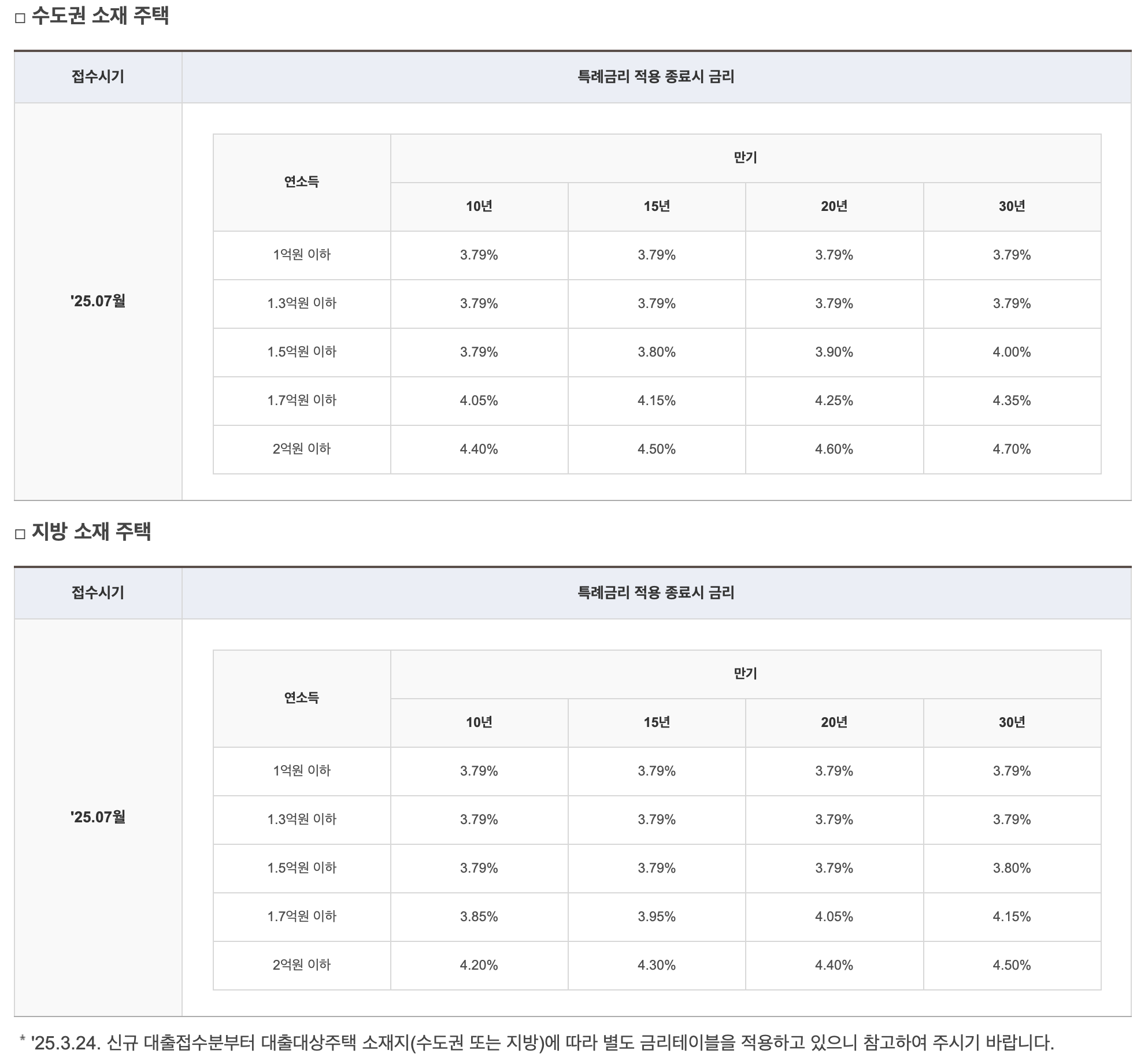 - 특례금리(A): 연 1.80%~4.50%(2025.03.24 기준, 국토교통부 고시에 따른 고정금리)